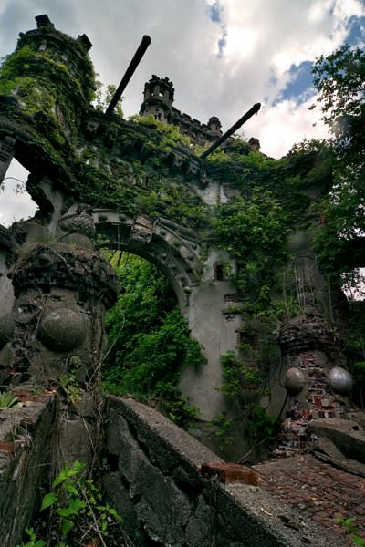 Bannermanův sklad v New Yorku byl příliš malý a příliš nebezpečný na to, aby pojal třicet milionů přebytečných nábojů s municí, které se mu podařilo nashromáždit, a tak si pro tuto funkci koupil celý ostrov na řece Hudson. Ostrov Pollepel (holandský výraz „dřevěná naběračka“) je skalnatý výběžek o rozloze 6,5 akru, který se nachází asi 50 mil severně od města. Ostrov byl neobydlený díky jeho historii; Domorodí Američané věřili, že na něm straší, a ranní holandští námořníci se obávali místních skřetů, kteří údajně dokázali svolat bouře, které by mohly potopit lodě (podkova přibitá ke stěžni byla prý vynikajícím odstrašujícím prostředkem). Opilé námořníky by také nechali na Pollopelu vystřízlivět. Když Bannerman koupil ostrov v roce 1900, sloužil pouze pro příležitostné letní pikniky.