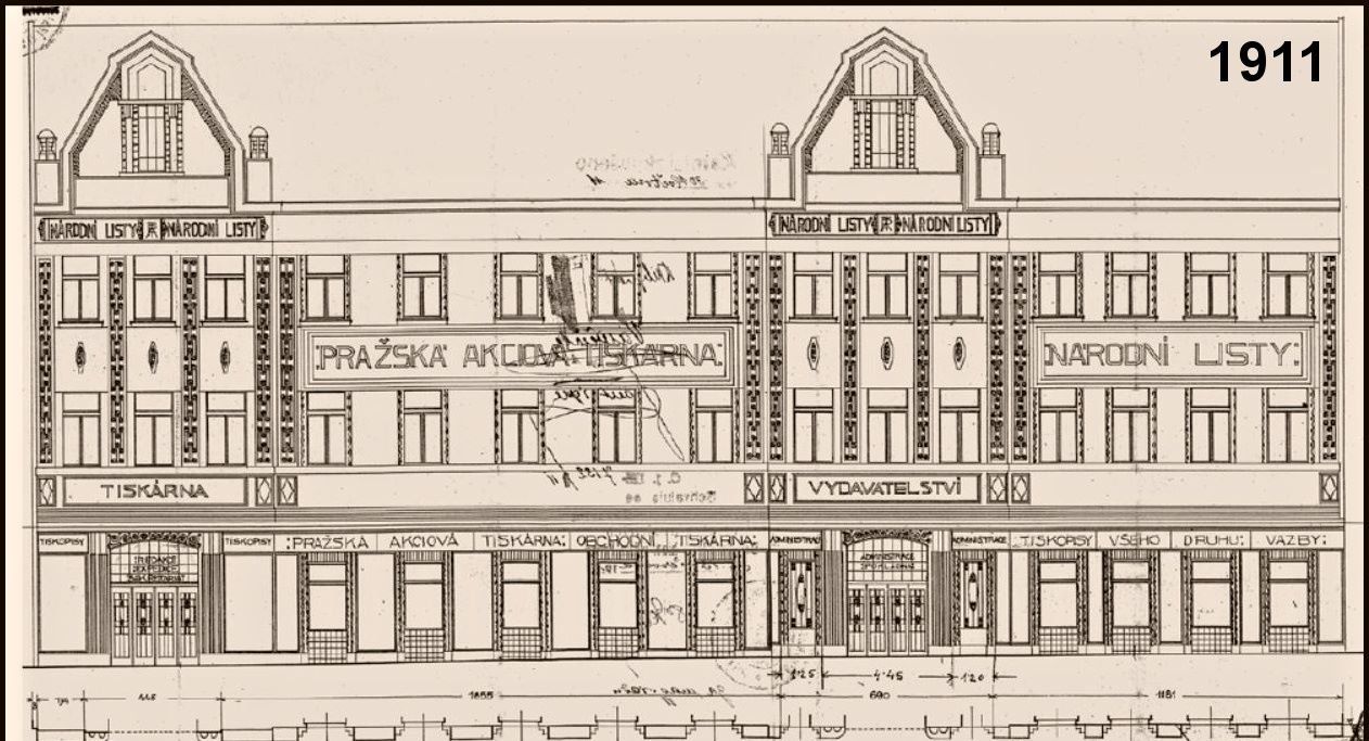 Dům s kvalitní pozdně secesní architekturou měl jednu z nejstarších fasád z umělého kamene a navazoval tak na středověkou zástavbu Nového Města. Areál tvořila uliční třípodlažní administrativní budova a dvorní trakt s tiskárnou. Uliční průčelí, široké a symetricky koncipované ve stylu geometrizující secese, mělo v krajních osách umístěny segmentové vstupy. Okraje tohoto průčelí byly zvýrazněny mělkými rizality, ukončenými šestiboce zalamovanými štítovými nástavci. Jemně modelované geometrizující kompoziční prvky v rámcích byly provedeny v umělém kameni. Patra spojovalo tříramenné schodiště s kovaným zábradlím. Samostatně řešená východní část areálu navazovala na budovu, ve které později sídlila Česká tisková kancelář.